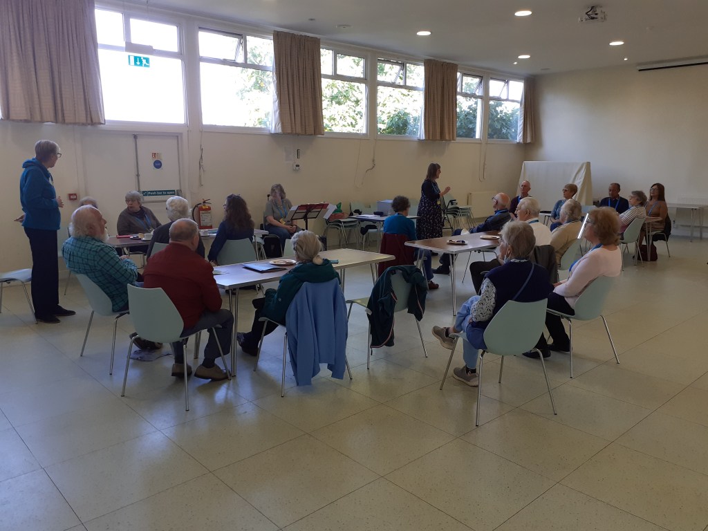 The singing was again superbly led by Lindy with June providing the music. Judith and Di served the hot drinks plus cakes and biscuits and Merrial, Sue, Lyndon and Mike helped out. The atmosphere in the room was very relaxed and everybody was happy to be out in the fresh air and singing their hearts out. We look forward to the next session on Thursday 28th October from 10.30 until 12.15.