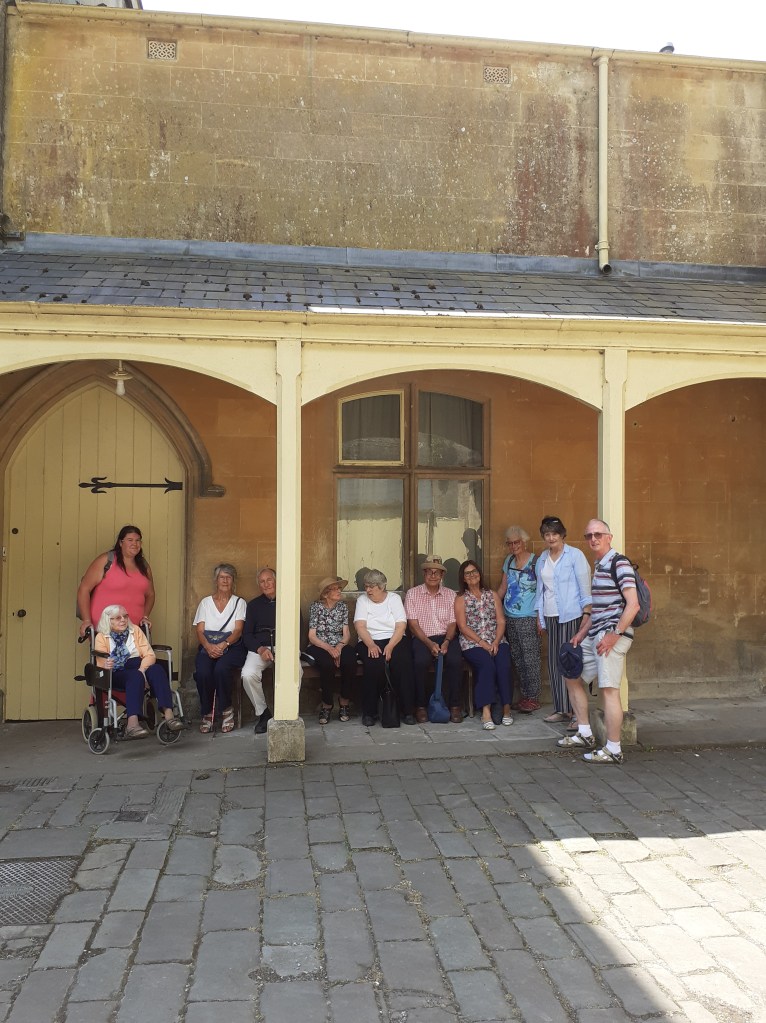 We arranged a trip to Tyntesfield on the 22nd June for any of our couples who were interested. Four pairs, Merv and Kate, Eileen and Rosina, Ros and Barbara and Jenny and Geoff went along and Dial-a-Ride provided the transport. Three volunteers also went to lend a helping hand. The National Trust’s shuttle bus transferred everyone down to the house then we all walked around the ground floor and heard all about the house from the stewards. It was a very hot day so we decided to get the shuttle bus back to the café at the top where we all enjoyed a cuppa and a piece of cake. The National Trust staff and volunteers, who are all being trained to be dementia friendly, looked after us all very well. We hope to arrange a couple more Tyntesfield trips before the end of summer.