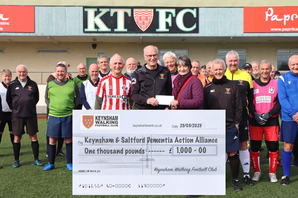 The photograph shows Merrial and Mike being presented with a cheque for £1000 from Mike Slucutt who is the chairman of Keynsham Town Walking Football Club. This was handed over prior to one of our regular sessions down at Keynsham Town’s football ground. Since the club was founded in 2014 they have raised £38,000 for good local causes. It is a great club and we thank them for their generosity. They run sessions on Tuesday and Friday mornings and also on Thursday evenings