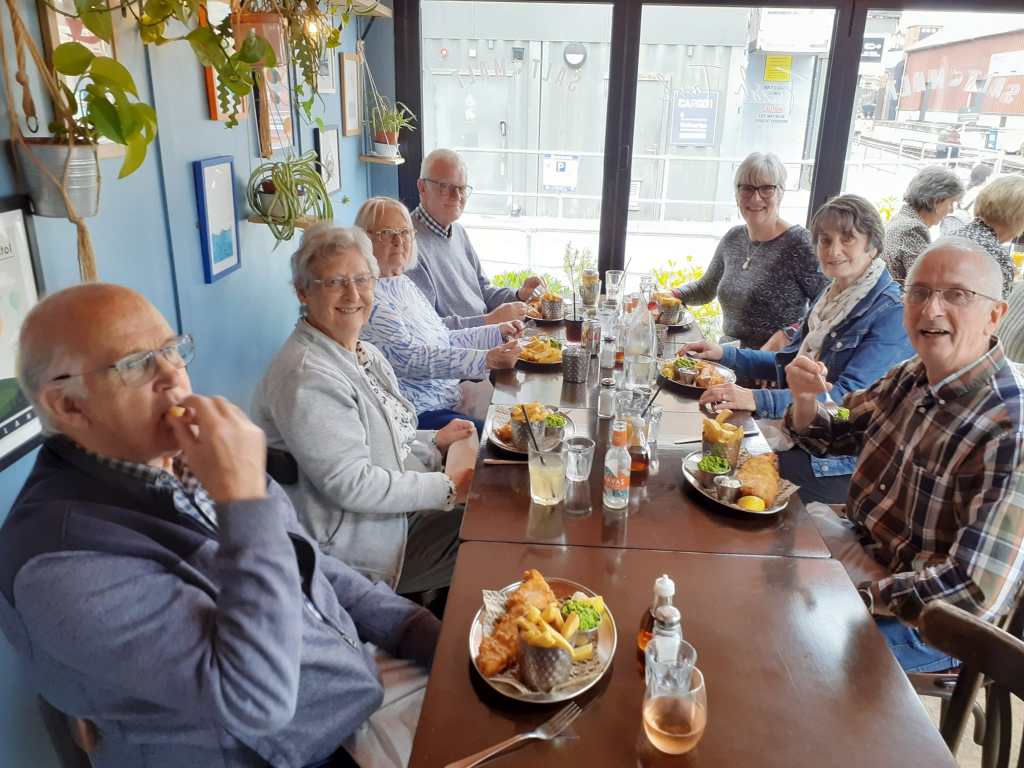 Five couples and four volunteers met up in St Dunstan’s car park on Thursday 2nd October. We got Dial-a-Ride to take us all down to Keynsham railway station where we met up with Faye. The eight minute ride on the 10.38 into Temple Meads and the taxis to take us all to the M-Shed by the Bristol waterfront were both arranged by Faye. We all had a drink and then wandered around the museum before retiring to the nearby Salt and Malt restaurant for fish and chips. After that some went for a walk along the waterfront and some looked around more of the museum. We all met up at 2.15 for the return journey and we arrived back in Keynsham at 3.15, bang on time.